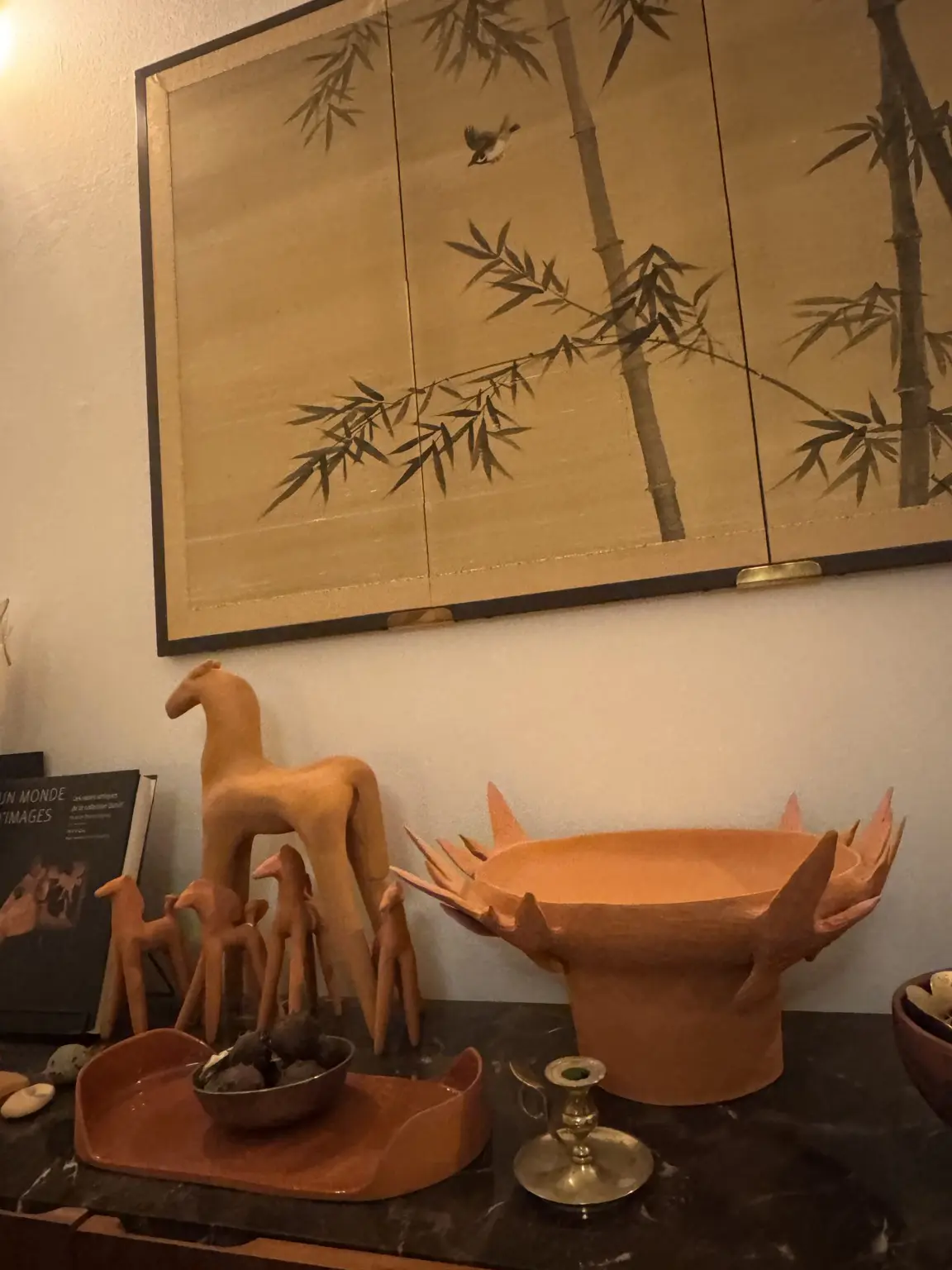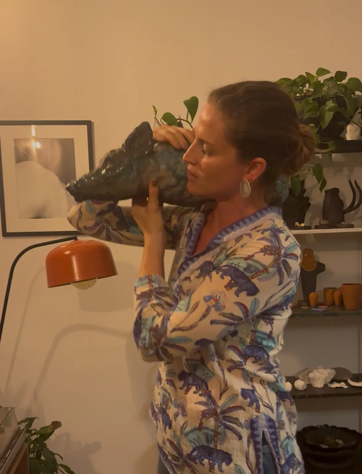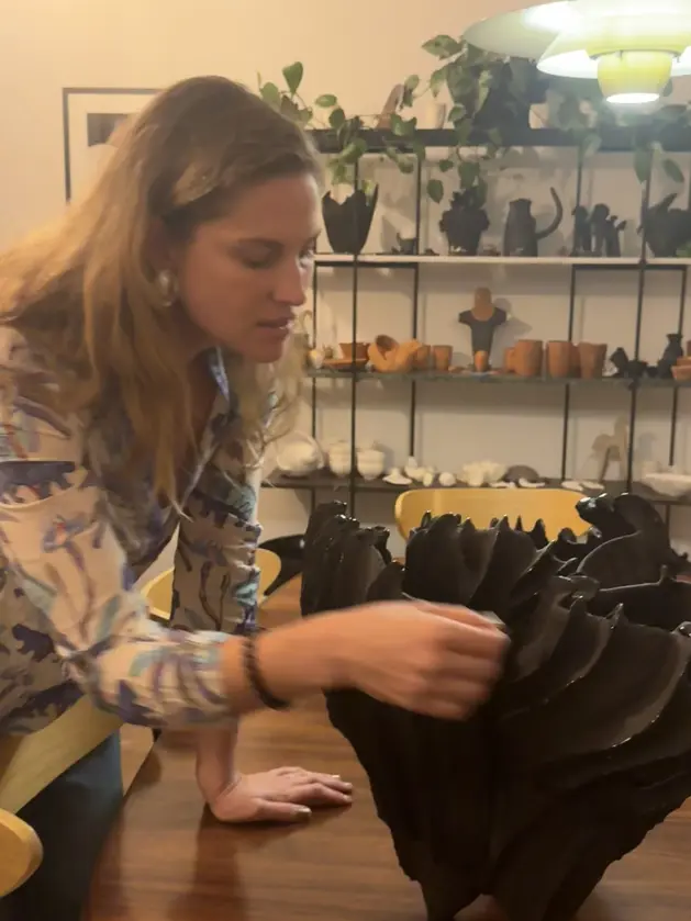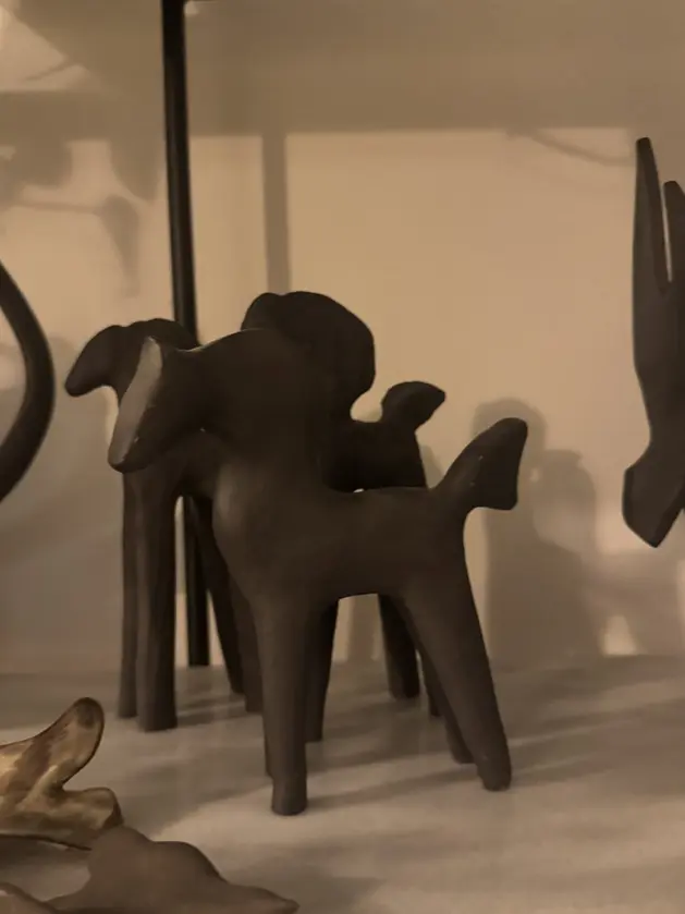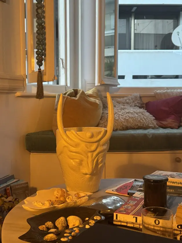 Diane walks barefoot, smells of essential oils from the Cyclades, and while she speaks her eyes play with the rhythm of emotions. Her gestures are soft and feminine, the movements of her body gentle and uniform. While she’s showing me her ceramic figurines and sculptures, she has made in various stages of creation, it seems to me that she looks at them as if they have known each other for a long time and that their conversation never stops.