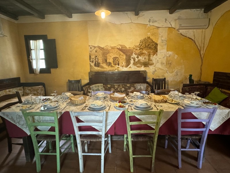 We are heading to the mountains to meet the designer and owner of the family agritourism Il Muto di Gallura. Her name is Catalina Serra (Sardinia was under the Spanish crown for a long time, so many families have Spanish origins, first and last names). We were greeted by local dogs, sleepy but curious. I felt a bit dizzy, as if I was in a cloud, high in the hills surrounded by rocks and oversized stones that have been lying for centuries in the forest among conifers.